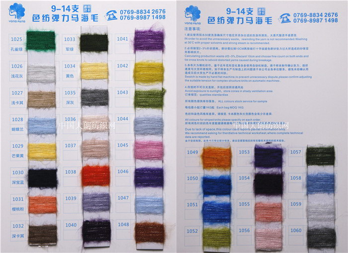 9支色纺弹力马海毛